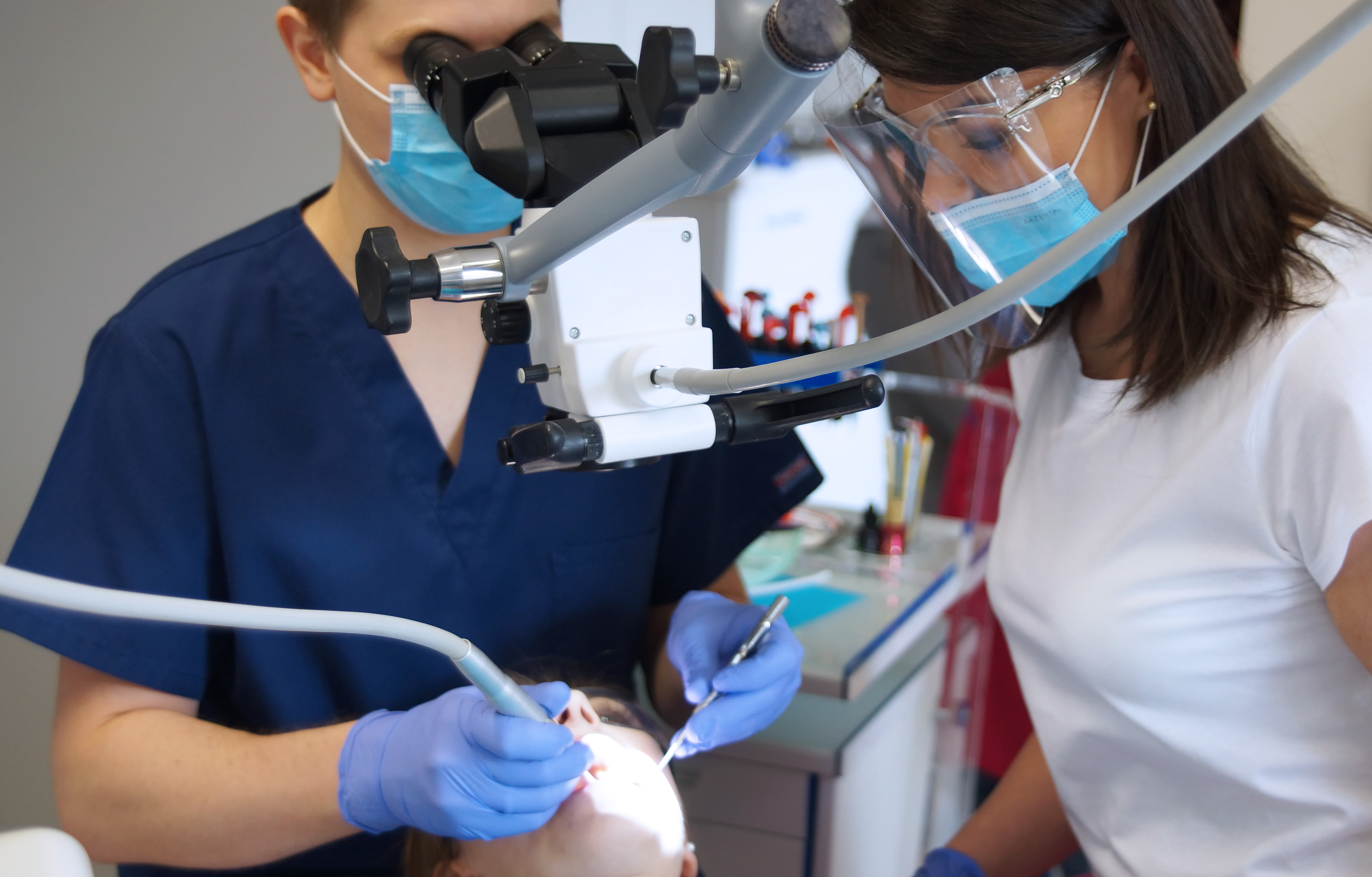 Leczymy precyzyjnie. Badanie przeglądowe przeprowadzamy w optycznym powiększeniu. Do jego wykonania wykorzystujemy lupy lub/i mikroskop. Pozwala to na dokładniejsze określenie stanu chorobowego zęba, a także na zlokalizowanie nawet małych ubytków. W sytuacji budzącej wątpliwości diagnostyczne wykonujemy na miejscu cyfrowe zdjęcia RTG.
